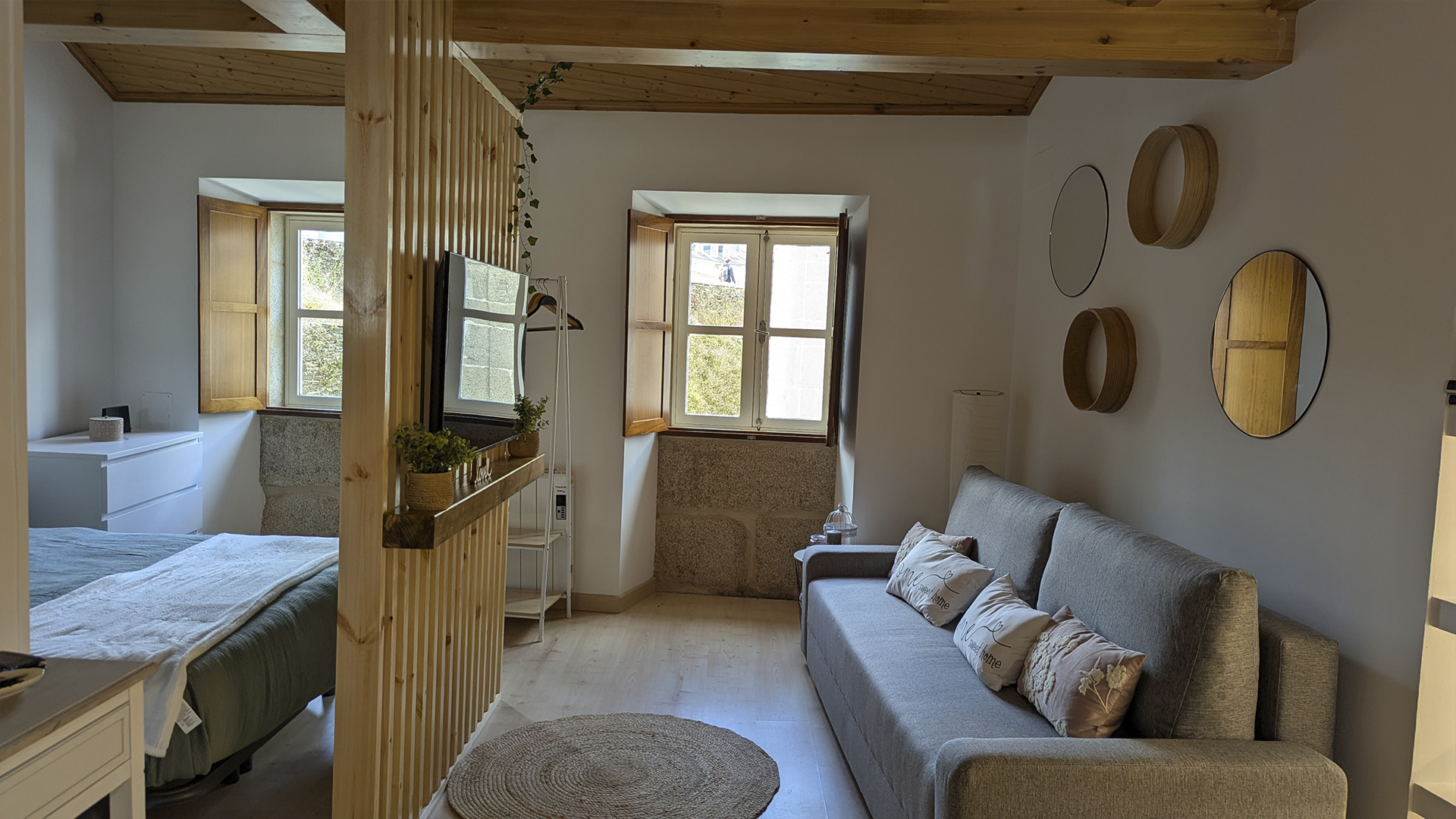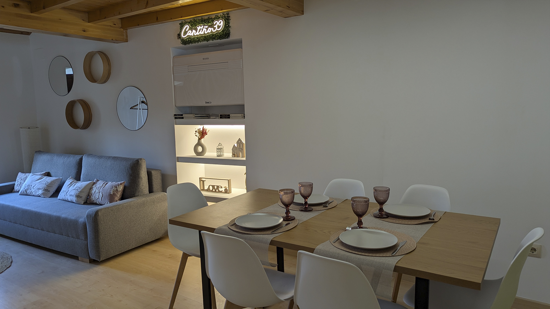 Nuestro alojamiento puede albergar hasta 6 personas (máximo 4 adultos y 2 niños) ya que dispone de un sofá cama que se transforma en cama doble.